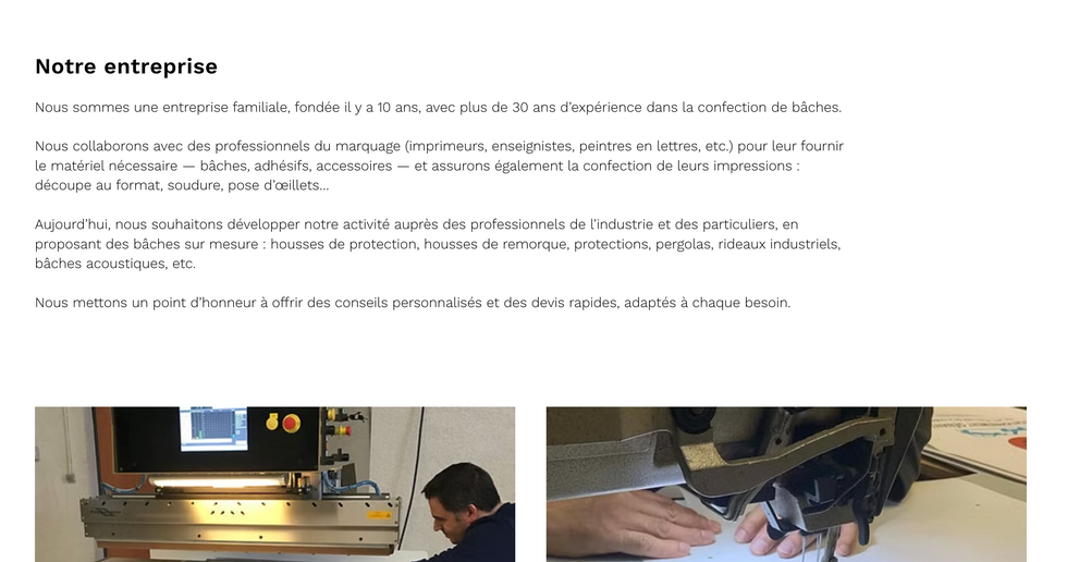 Secteur d’activité : Réalisation de bâches sur mesure et fourniture de matériel pour la communication visuelle